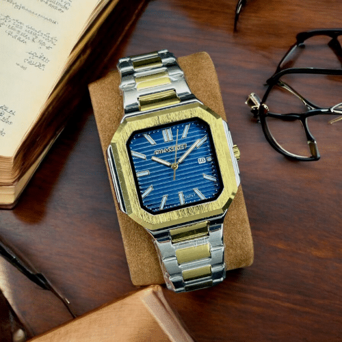 h precision and style, this watch is the perfect blend of luxury and functionality. The striking square dial with a bold green face makes a strong statement, while the two-tone stainless steel strap adds sophistication to your outfit. Whether you're at work, at a formal event, or enjoying a casual outing, this watch complements every occasion.